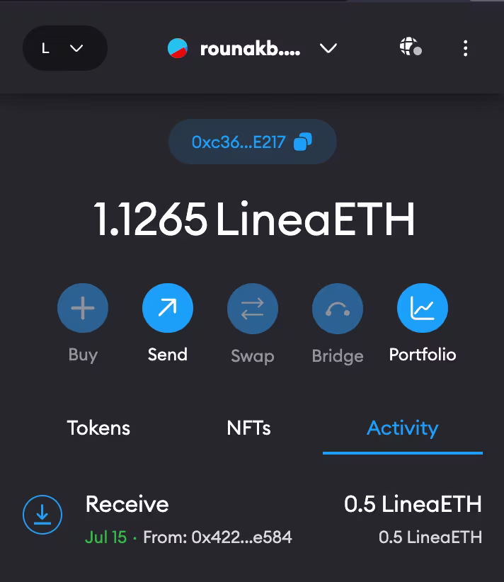 Once the top up is done, you should see a small LineaETH balance: