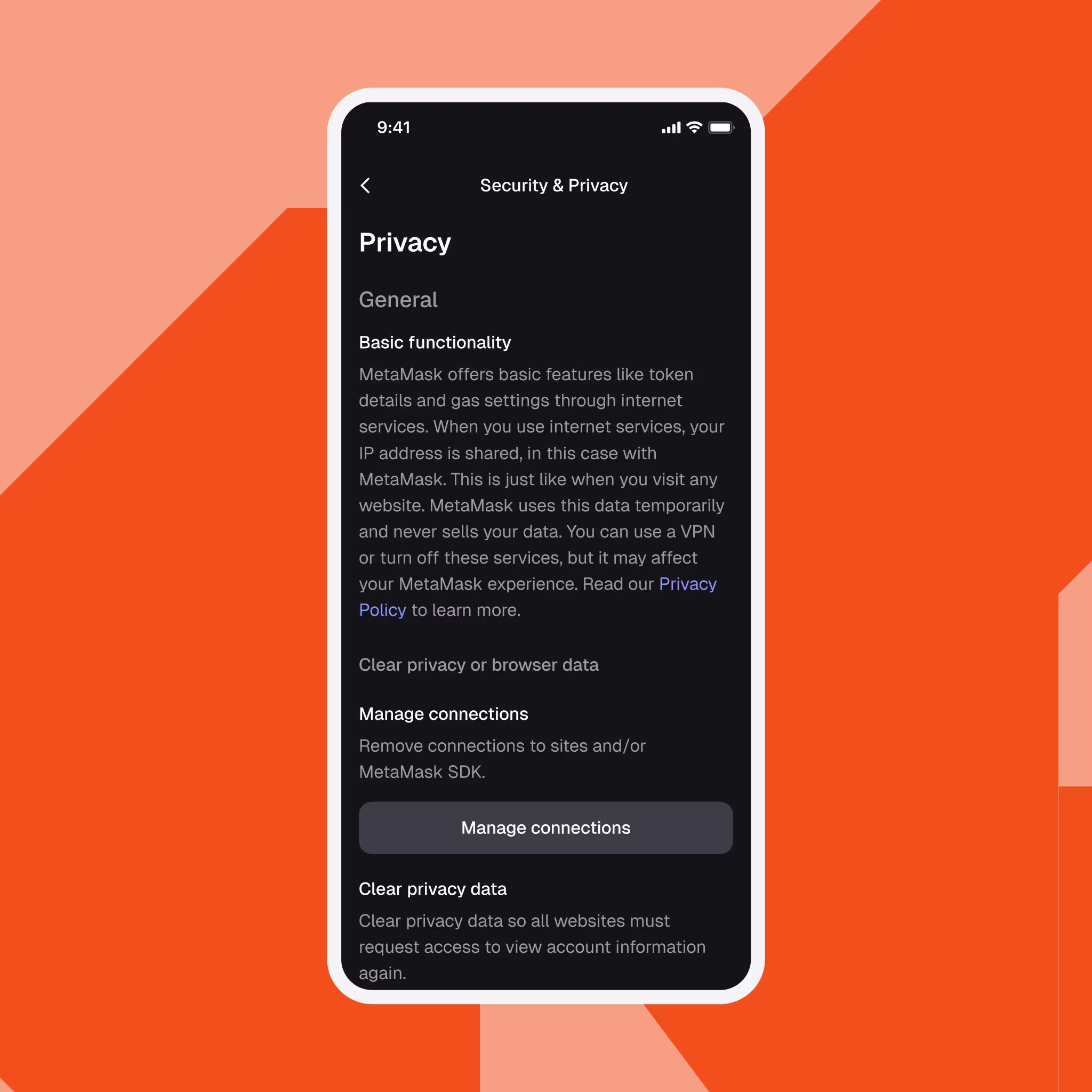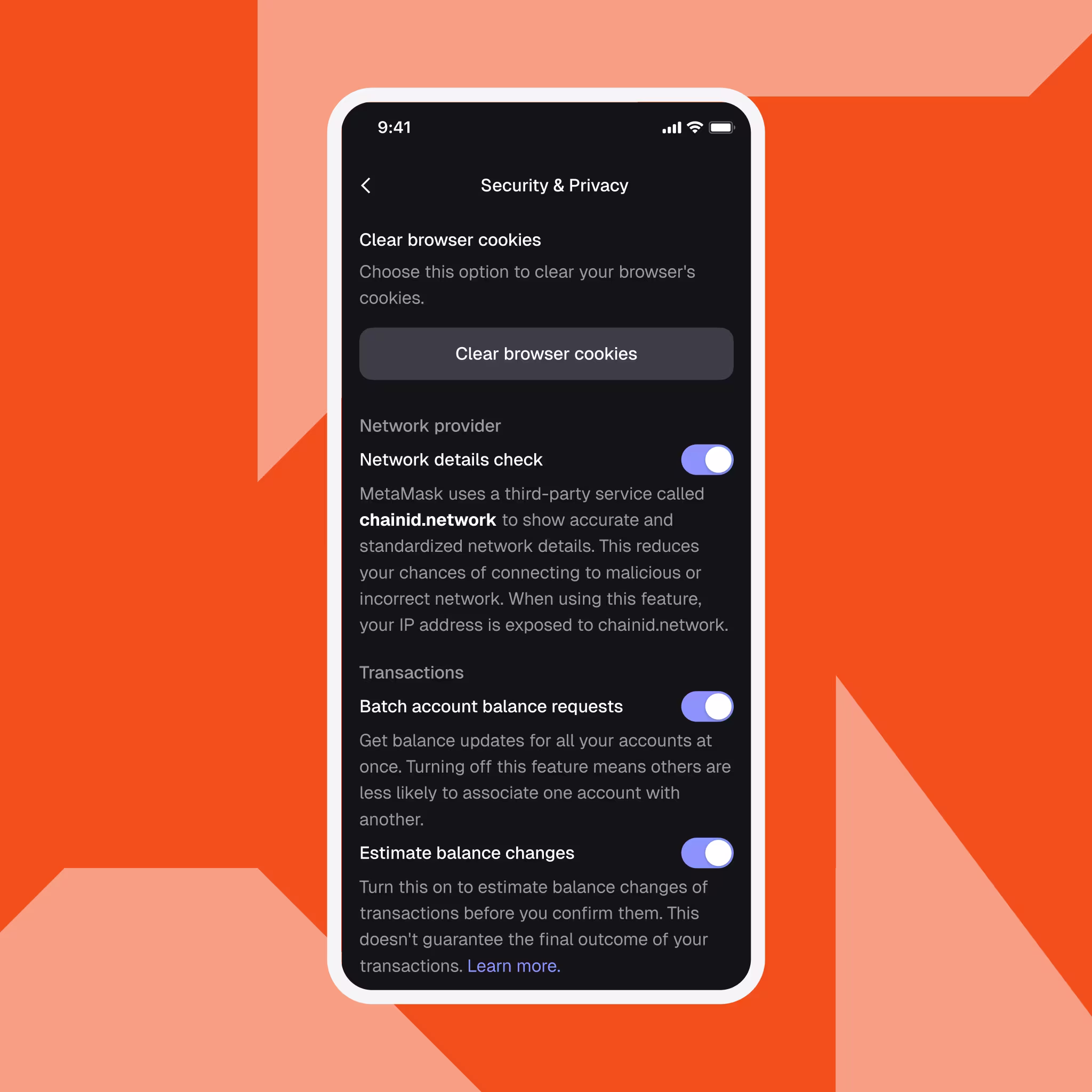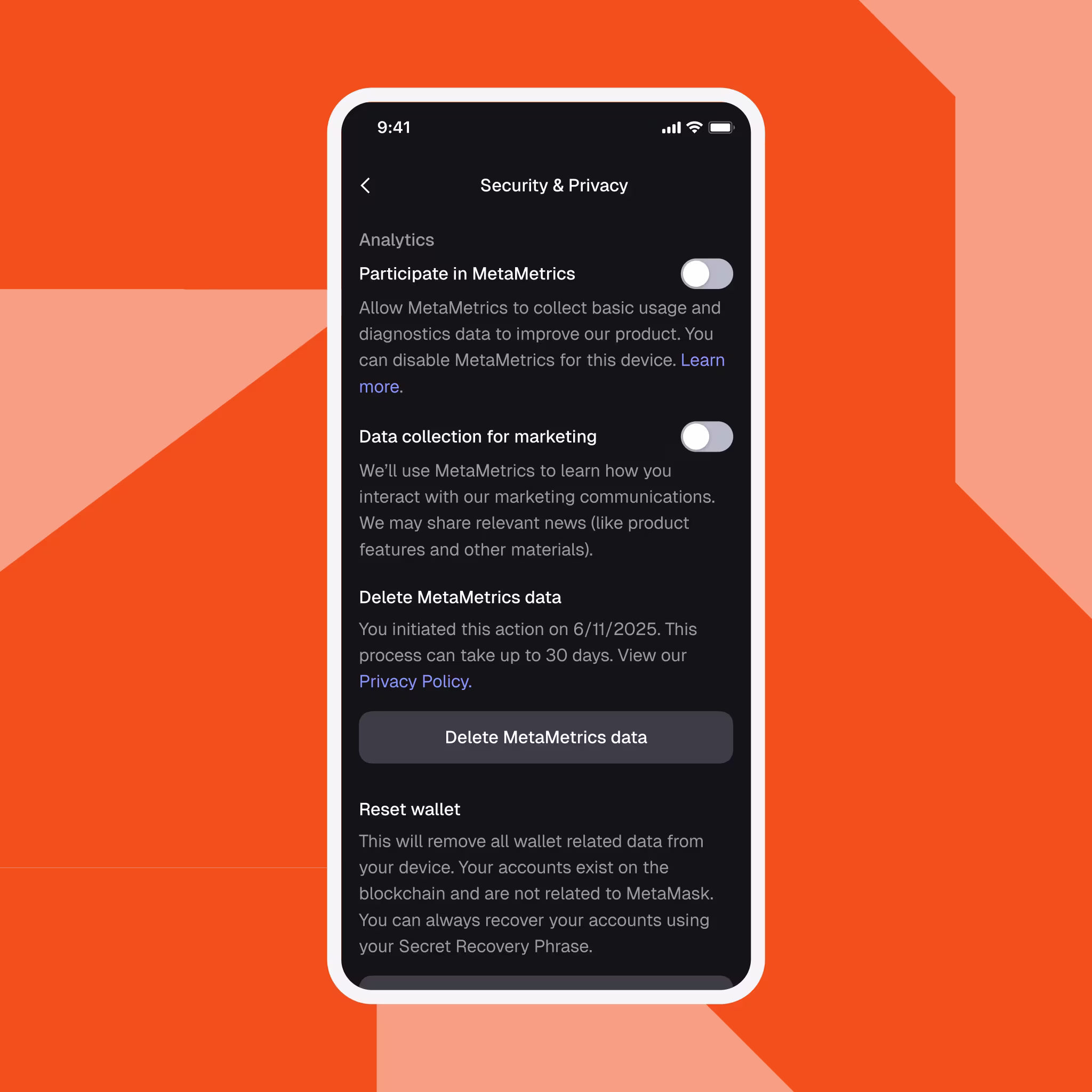 MetaMask is committed to offering an exceptional, privacy preserving crypto wallet experience that keeps you safe and lets you configure settings based on your preferences.