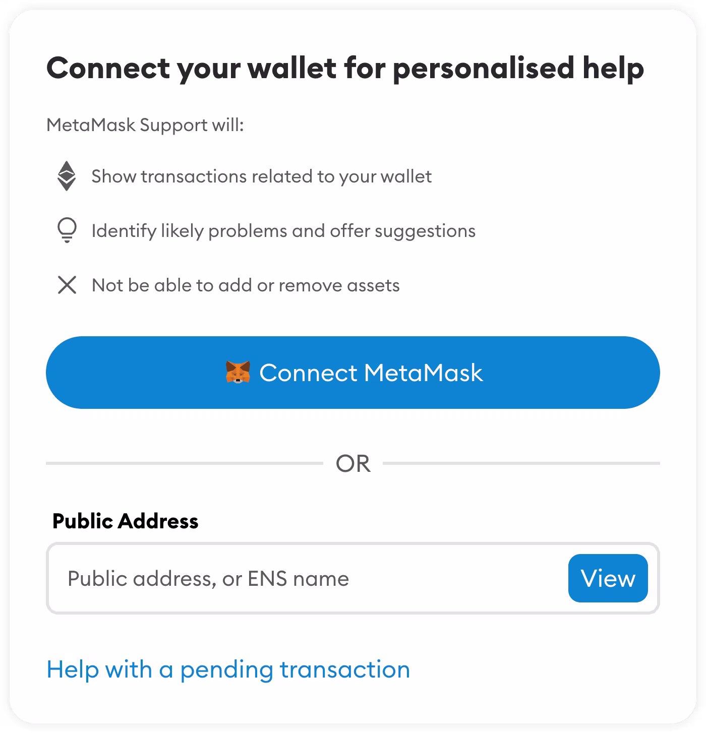 MetaMask Activity has an additional tool which helps users chase down transactions that go wrong. Transactions that fail, get stuck, or are pending for long periods of time: