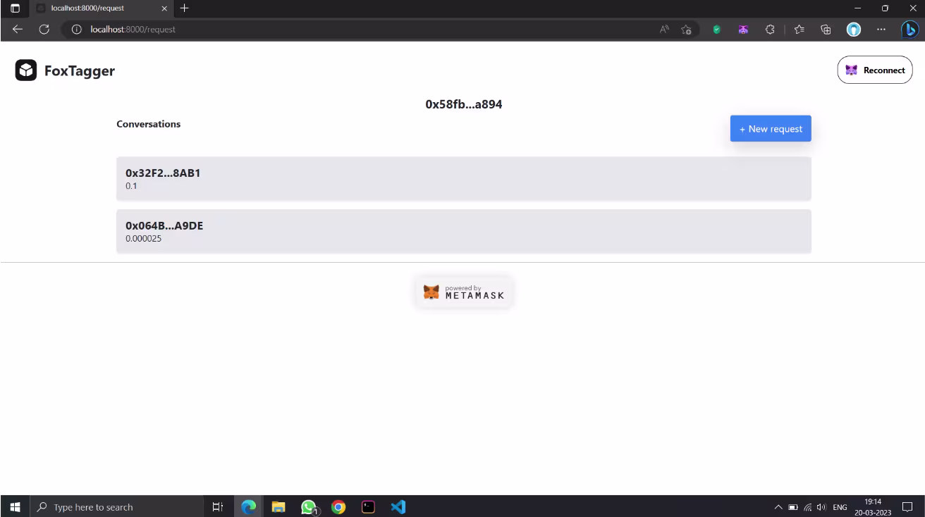 This is the final look of the website:This is a unique feature in which a user can send a notification through XMTP to another user requesting for ETH. For this, both the users need to have this snap enabled. This feature is made available at http://localhost:8000/request.