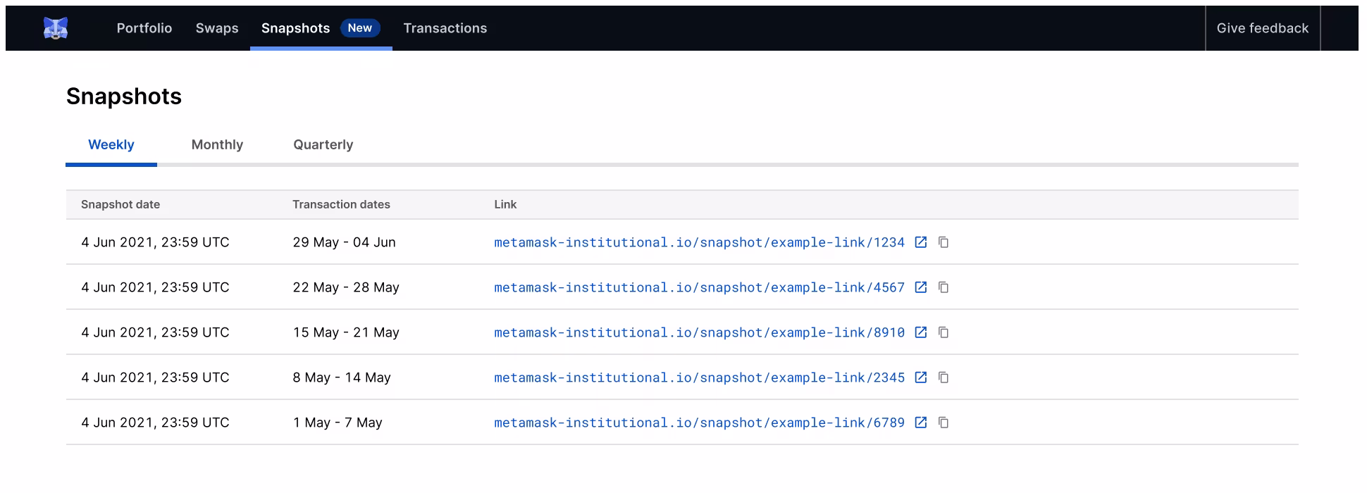 Reporting is another key, and difficult aspect of Web3. We meet with our users daily and hear about the hours they spend explaining their transactions to their third-party service providers. Valuations are done with manual screenshots and transaction history downloaded from block explorers. Reporting and valuations also closely ties into profit and loss, net asset values and performance. Today, there are very few providers that provide accurate Web3 reporting capabilities.Over Q2, we built and launched valuation and read-only data sharing capabilities in our portfolio snapshot feature, providing accurate valuations across all EVMs in token, DeFi positions and NFTs. Our portfolio snapshot feature automatically creates weekly, monthly and quarterly valuations and transaction history that can be shared in read-only format to third-party service providers. With data also downloadable to CSV, it also lays the foundation of building our Web3 attribution capabilities in the upcoming quarter.