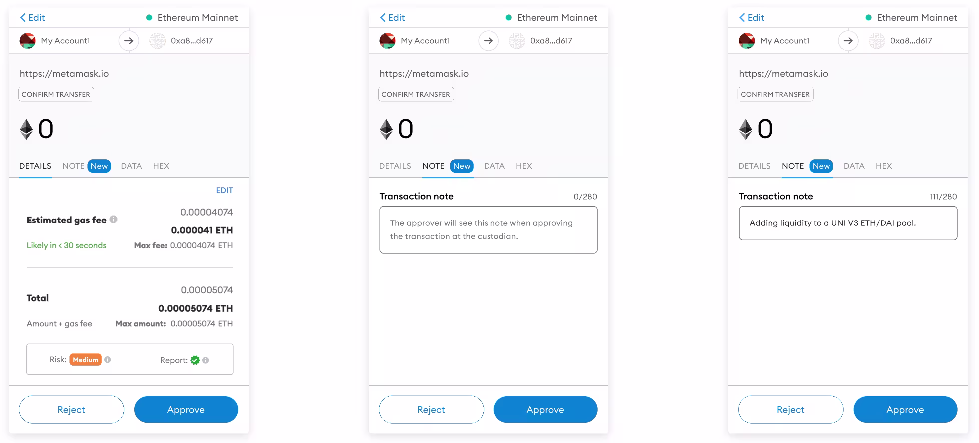 On top of a range of user experience and design updates in the extension, we also launched transaction notes. This feature gives organisations the ability to provide notes and context around their transactions. These notes will appear within custodian user interfaces to assist stakeholders in the signing process. From our product discovery process, we found that a continued pain point for our users was the extra layer of required communication through third-party channels to describe and provide assurance around a transaction. Transaction notes eliminate the additional time users spend to provide details of their trades, and simplify the overall process. Over the quarter we recorded engagement and retention metrics that were over three times the industry-average.